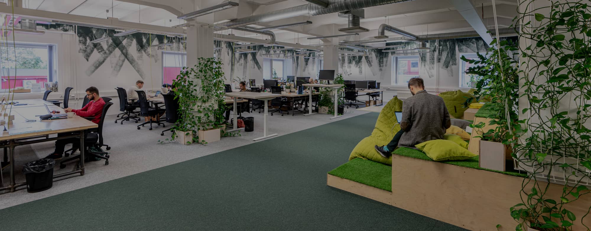 Meie eesmärk on pakkuda parimat keskkonda produktiivsuseks. Meil on eraldatud vaikne tööala ning tiimi tööala, nõupidamisruumid kvaliteetsete videokonverentsi süsteemidega ja kohvikuosa külalistega suhtlemiseks.